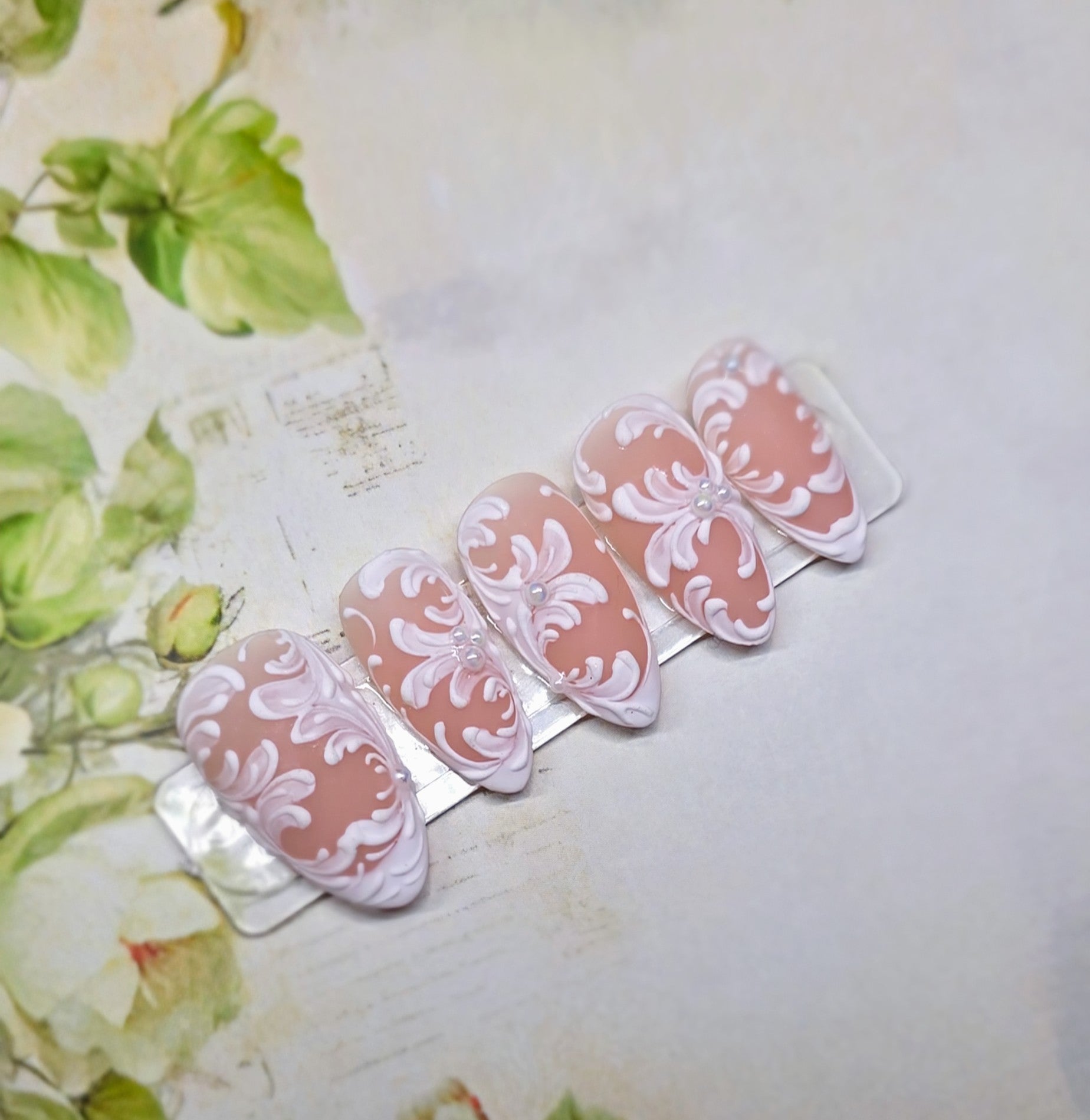 Planning your perfect wedding day involves attention to every exquisite detail, and your nails are no exception. Lace and pearls nail art is a stunning choice that epitomizes elegance, grace , and romance, making it the ideal addition to brides. This sophisticated design captures the intricated beauty of lace, repesenting timelss traditions and deliate femininity, while the pearl accents add a touch of luxury and refinement.